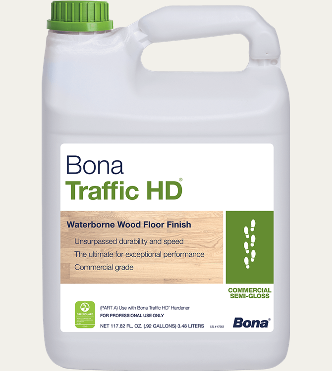 Bona Traffic HD® is an industry-leading, two-component waterborne polyurethane finish designed for commercial and high-traffic residential hardwood floors. Engineered for maximum durability, it offers unmatched resistance to scuffs, scratches, and chemicals—ideal for malls, offices, schools, theaters, and homes that demand both beauty and performance.
